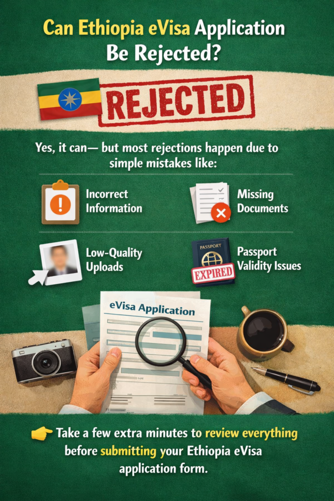 Even though the process is fast, it’s always better to have your visa ready before your trip. Can Ethiopia e Visa Application Be Rejected?Yes, it can—but most rejections happen due to simple mistakes like: ![]()